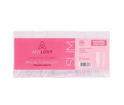 O Molde F1 Slim Bailarina Curvatura Extra Longa Anylovy ? Transparente é um lançamento exclusivo desenvolvido para elevar o nível dos alongamentos. Ele combina curvatura estratégica, comprimento extra longo e tecnologia Zero Milímetro, entregando unhas mais leves, sofisticadas e com arquitetura perfeita.